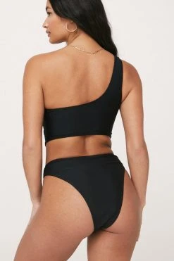 All Things Considered by Nasty Gal is our collection of sustainable pieces each thoughtfully considered and crafted with the world in mind. This bikini set consists of a bikini top and bottoms. The bikini top features a one shoulder strap, ring detailing with ruched design, and bow tie closure at front. The matching bottoms feature a high leg, high waisted silhouette, ring detailing, and medium bottom coverage.