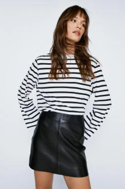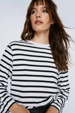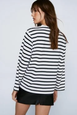 Build your basics. Feel relaxed in our long sleeve striped t-shirt, in a super comfy fit you’ll keep coming back to. Our long sleeved stripe t-shirt looks great with leather shorts or pants.