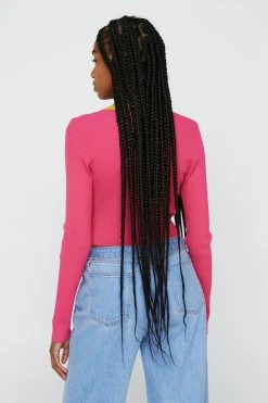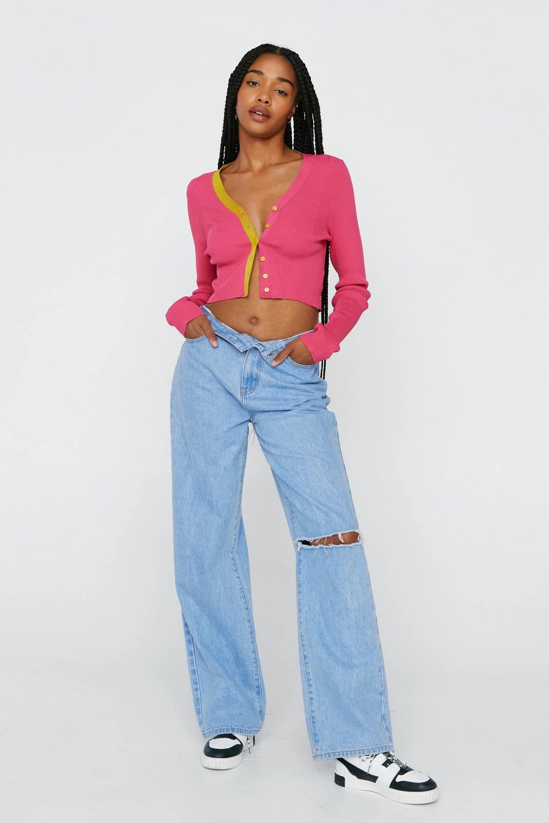 A pop of color. Wear with wide leg denim jeans, or a raw hem mini skirt.