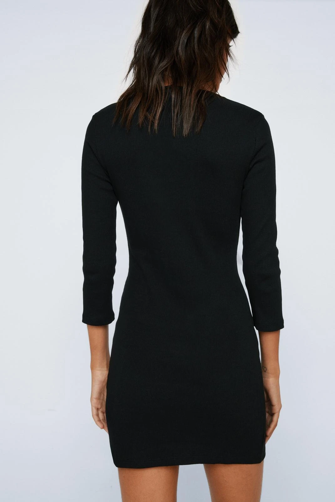 Elevated staples. Feel stellar in our mini dress, made in high quality ribbed fabric, with a sexy bodycon fit, and 3/4 length sleeves. Wear with boots and a leather jacket for an elevated daytime look that you’ll keep coming back to, whether you’re heading to the office or our on date night.