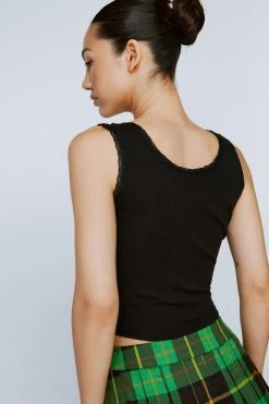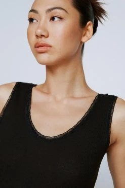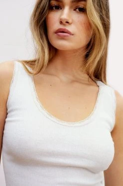 Everyday essentials. Feel cute in our tank top, with a minimal lace trim, high quality ribbed fabric, and a relaxed straight fit. Pairs well with jeans or shorts for a casual daytime look that you’ll keep coming back to.