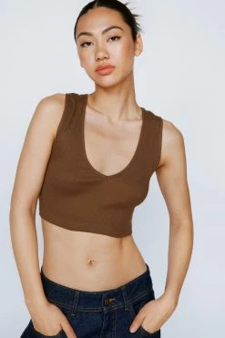 - Ribbed V-Neck Cropped Vest Top