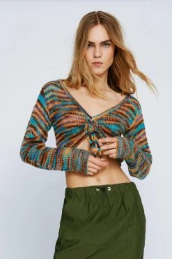 Knitting pretty. Our space dye knitted sweater will have you feeling hella comfy with its ruched front design. Style with cargo pants for a look that’ll take you from city walks to brunch dates.