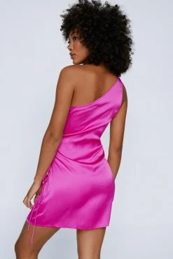 A moment for the dress. Feel fancy when you slip into our mini dress, made in a high quality satin fabric, with a one shoulder design, and lace up insert. Pairs well with strappy heels for an occasion look you’ll keep coming back to, whether you’re heading to prom, choosing a wedding guest look, or just updating your occasionwear.