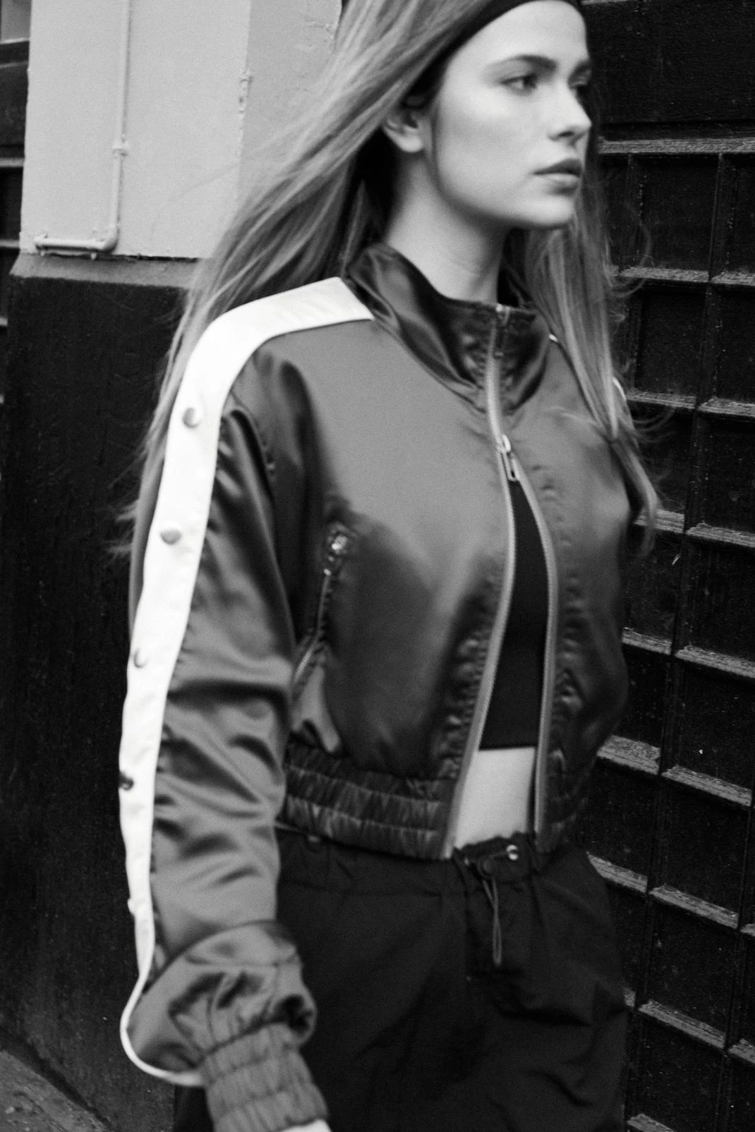 Just popping out. Feel fierce in our popper jacket, made in high quality satin fabric, with a comfortable, relaxed fit, and metallic popper button features. Wear with cargo pants or sweatpants for a daytime look that you’ll keep coming back to, whether you’re heading to the office, on a day out with the girls, or need an extra layer for your festival weekender.