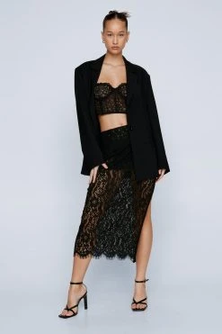 Laced up. Elevate your eveningwear options with our intricate lace midi skirt.
