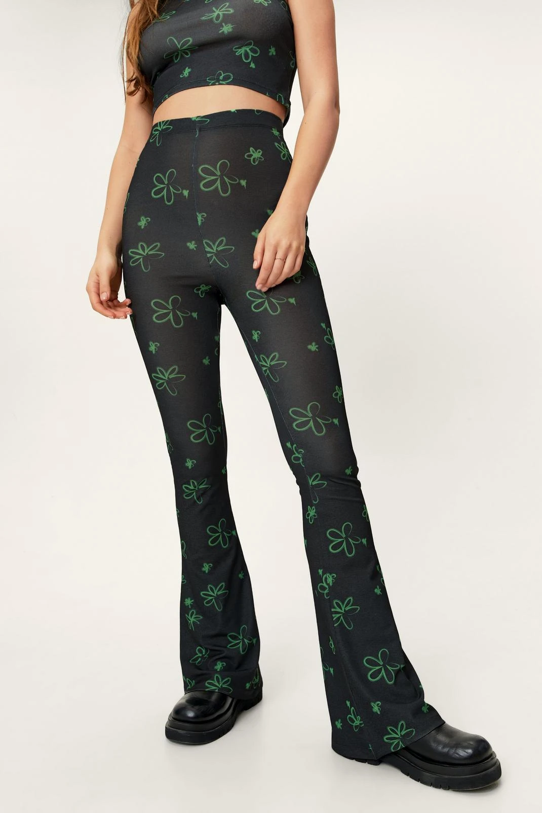 Leg day. Feel fierce in our flare pants, with a fun floral pattern, a comfortable high waistline, and ultra flattering flared fit. Style with the matching crop top for a look perfect for anything, from gig nights to airport layovers to nearby dancefloors.