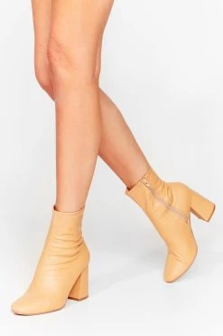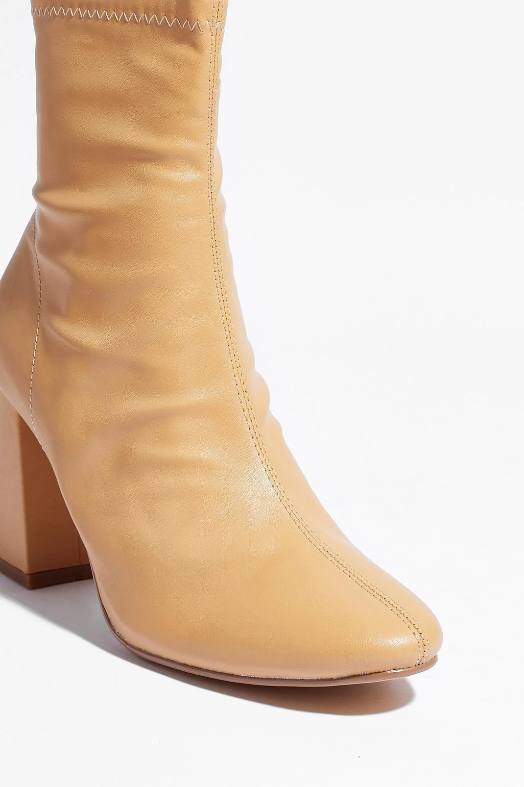 Boot season arrived and we’re totally here for it. These boots come in faux leather and feature a sock design, block heel, almond toe, and inside zip closure.