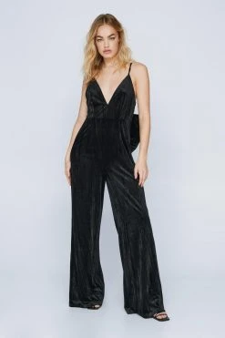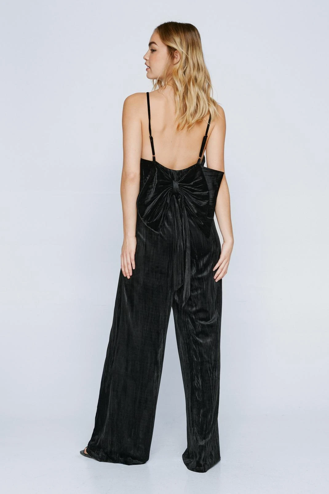 A vision in velvet. Wear our strappy velvet jumpsuit to any of your holiday parties.