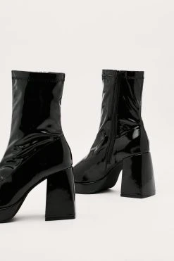 - Style: Stretch Patent Platform Sock Boots