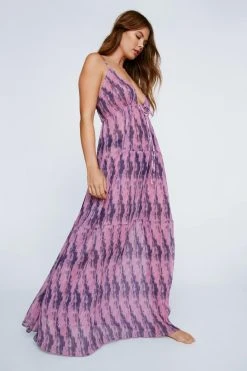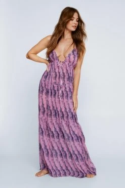 Life’s a beach. Our tie dye plisse maxi dress is the perfect beach dress. Wear it as a swimsuit cover up or solo for a cute evening look.