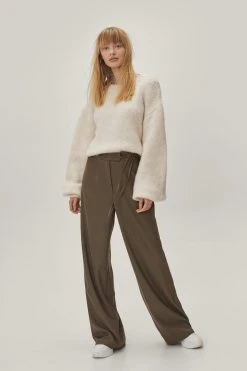 There’s power in pants. These pants come in a comfortable, woven fabric and feature a relaxed silhouette, bow tie closure at high waistband, decorative back pockets, concealed zip fly closure, and pull-on design. Pair yours with graphic T-shirts, chunky knit sweaters, and faux leather boots.