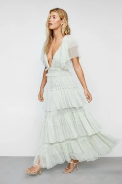 Ethereal moments. Style with metallic or embellished heels for a romantic evening look.