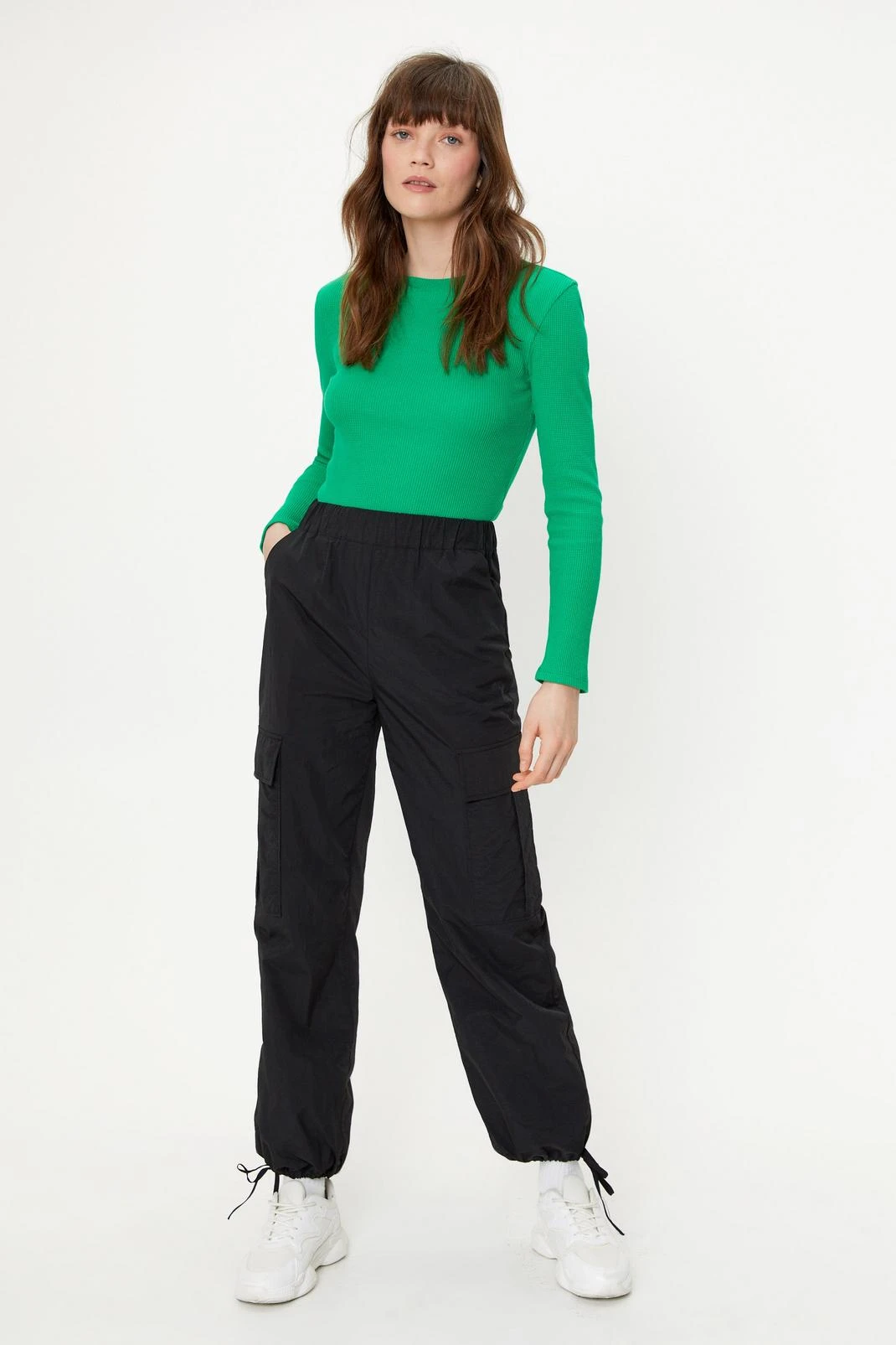 Great for adding a pop of colour to your outfit plans. This long sleeve top comes in a waffle fabric and features a crew neckline, fitted silhouette, and long sleeves. Style up yours with high waisted relaxed joggers and chunky biker boots.