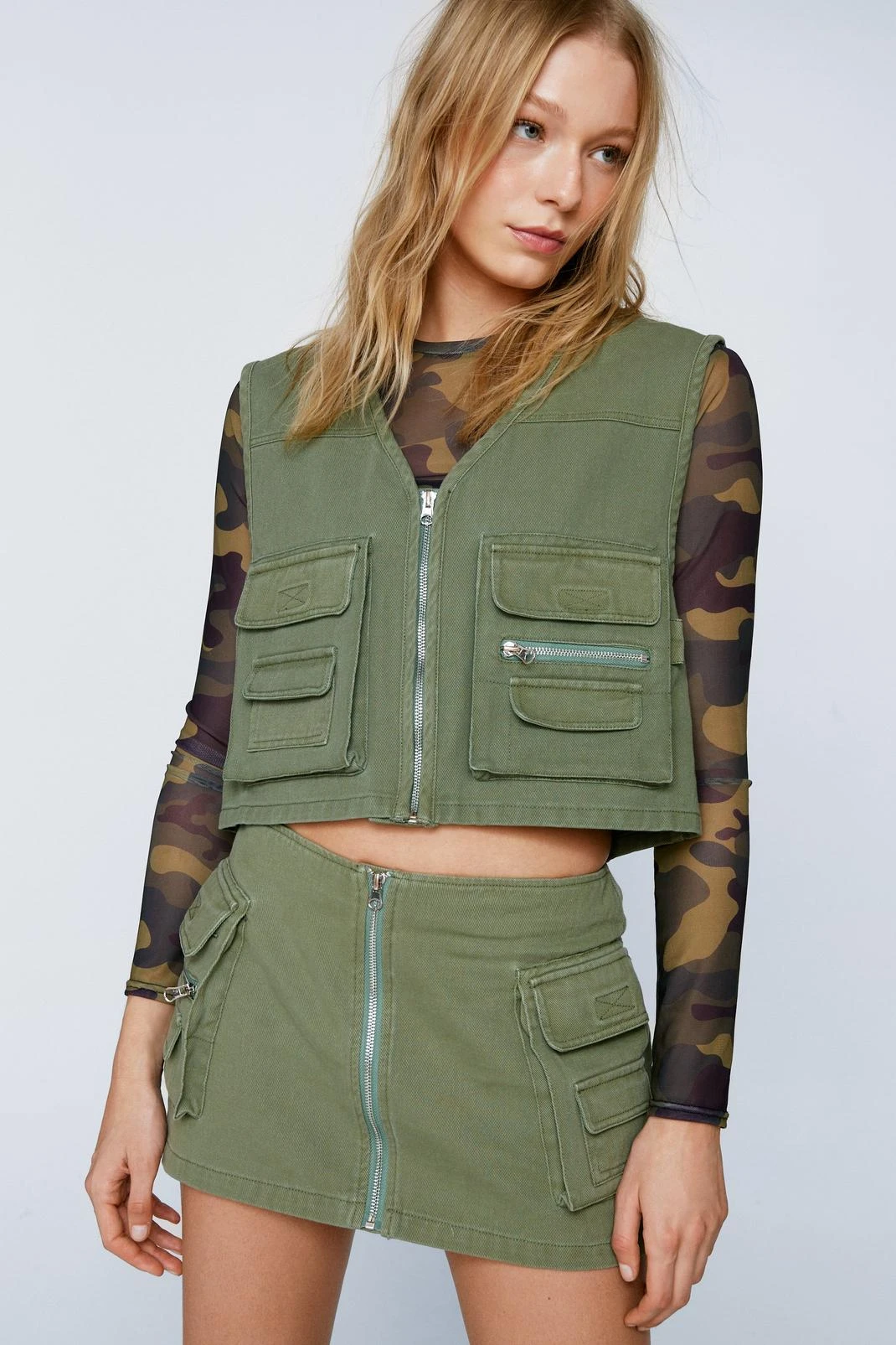 Vest in show. Feel confident in our vest jacket, a zip front fastening, a flirty cropped length, pocket features, and a flattering boxy fit. Style with boots and the co-ordinating skirt for a look that will take you anywhere, from festival weekends to gig nights and happy hour catch ups.